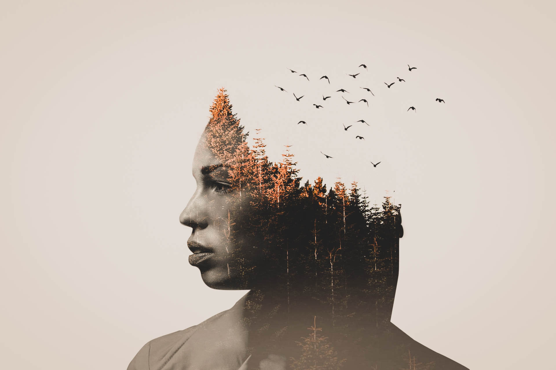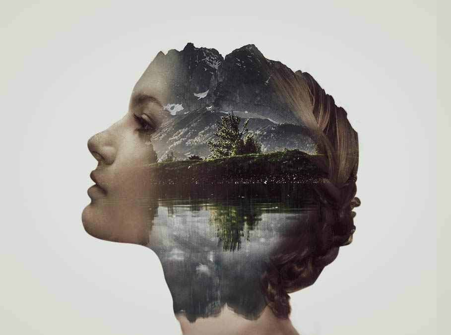 Double exposure effect met behulp van photoshop door gebruik te maken van lagen en penselen.